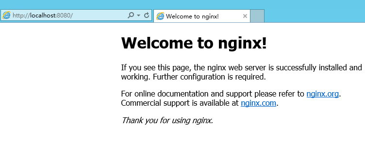 開瀏覽器,輸入地址:http://localhost:8080 (因為我們前面配置了8080端口),訪問頁面,出現如下頁面表示訪問成功。