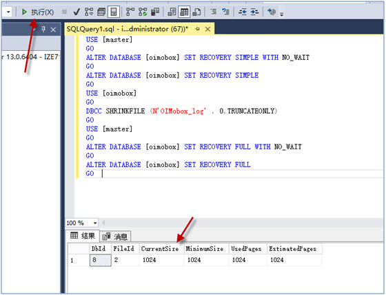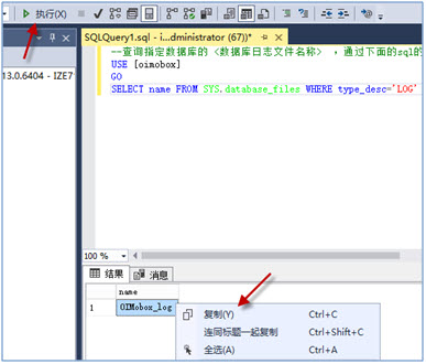 按腳本獲取到的 數(shù)據庫日志文件名稱 – 覆蓋; 及修改 數(shù)據庫名